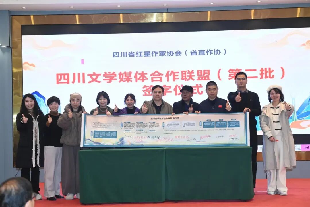 活动中,“四川文学媒体合作联盟”迎来第二批成员加入,四川文学杂志、廉政瞭望、人力资源报、精神文明报、大众健康报、华西社区报、四川工人日报、西南交通大学出版社、西南财经大学出版社等十余家媒体代表上台签约,文学传播矩阵进一步壮大。