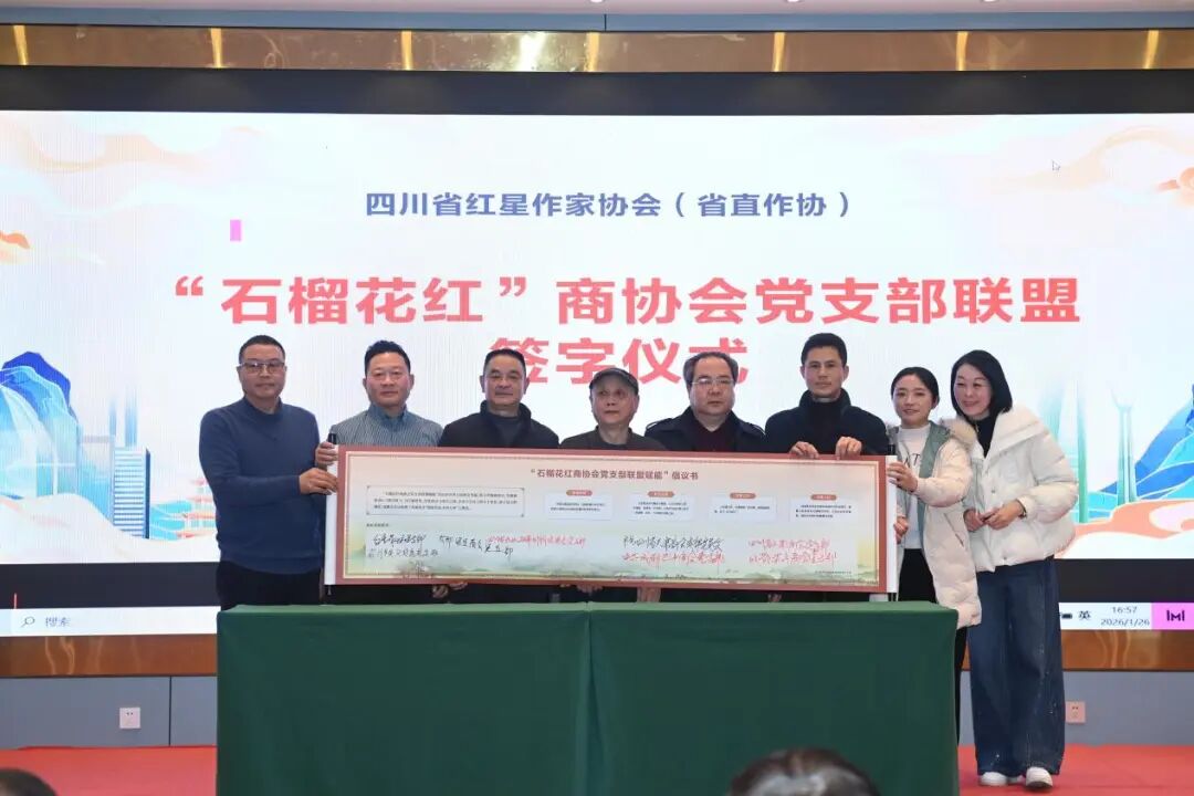 同时,由四川省云南商会发起,红星(省直)作协、四川省天津商会、四川省川联民营企业文化建设促进会、四川省企业品牌创新促进会、成都梁平商会、成都巴中商会、成都渠县商会等八家商协会党支部,联建共建的“石榴花红赋能商协会党支部联盟”正式启动,标志着文学与基层党建、企业文化建设横向深度融合进一步迈向更广阔的领域。