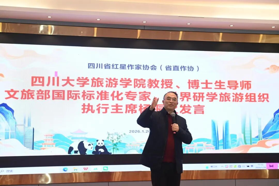 顾问专家四川大学旅游学院教授、博士生导师,文旅部国际标准化专家,世界研学旅游组织执行主席杨振之为大家分享了文学与文旅密不可分的关系以及美好前景。