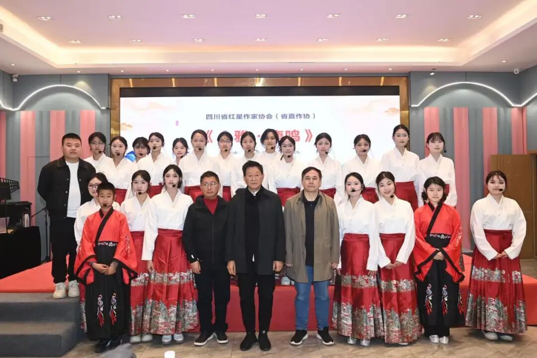 活动下半场,作家们上台一展才艺。由会员作家甘汶灵编导、作家们共同演绎的旗袍秀《锦帛华服·但取诗魂溶针脚》将古典服饰与文学意境巧妙融合;省直作家苏世佐作词的歌曲《千年的月光》,四川省原创音乐家协会副主席杨吉洪作词的《都江堰情思》唱出了对巴山蜀水的深情;成都华商理工学校师生带来的《小雅·鹿鸣》经典诵唱,则让现场沉浸在跨越千年的礼乐人文之中。