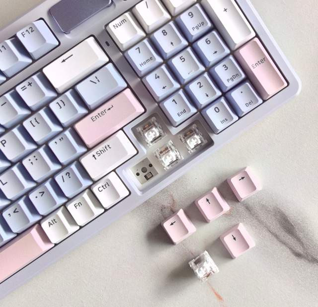 全键热插拔这个功能我也非常喜欢,这种插拔可以赋予这款键盘更多的玩法,虽然当前对弹白轴很满意,但是万一哪天想试试别的轴体了呢,所以这种插拔性能就能给键盘带来更长的生命力,让更换轴体变得简单,也延长了该键盘的“职业寿命”。