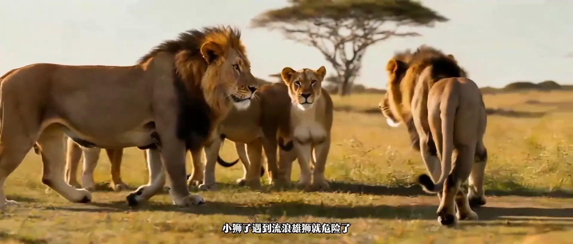 狮子是群居动物,这些小狮子得到狮王的认可后生活在狮群中,原本它们能快乐成长,可平静的生活总有挑战来临。这不,流浪雄狮来挑战狮王了。狮王年轻力壮,有能力应对,但狮子间的争斗残酷,小狮子遇到流浪雄狮就危险了。母狮们深知危险,每当流浪雄狮挑战时,它们就迅速行动,将小狮子叼走藏起来。